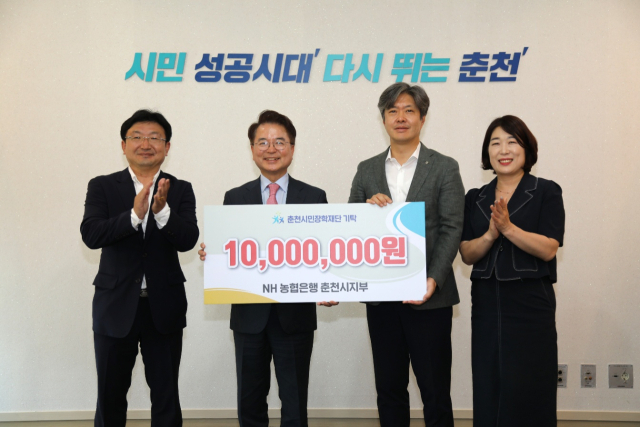 NH농협은행 춘천시지부(지부장:김현수)는 춘천시민장학재단에 인재육성을 위한 장학금 1,000만원을 기탁